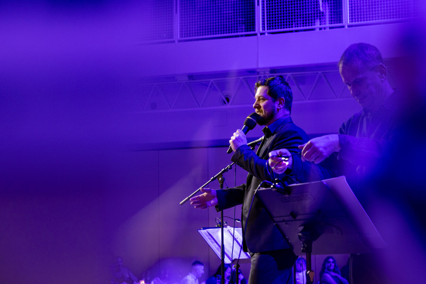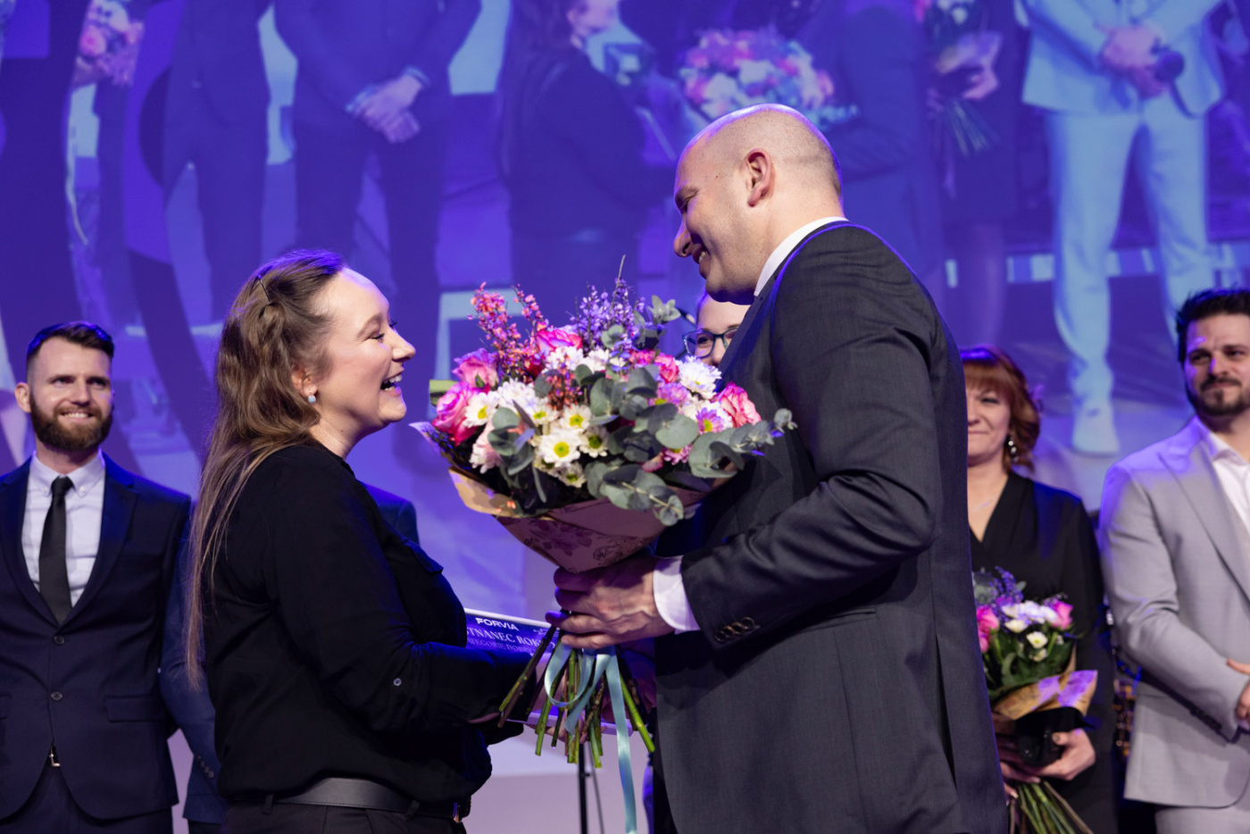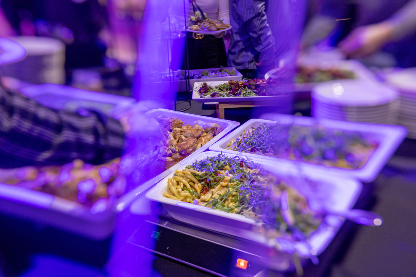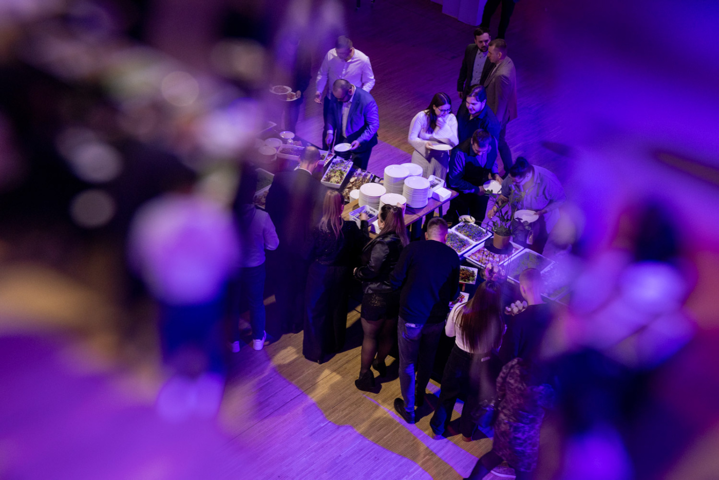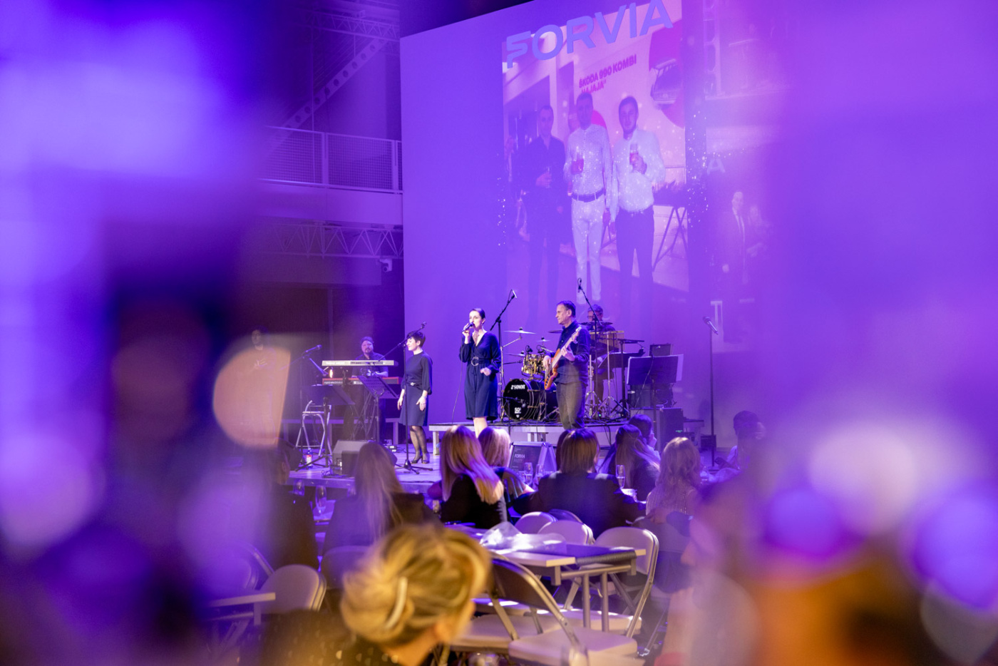 Významnou roli hrála také vizuální identita celé akce. Protože je modrá barvou společnosti Forvia, proměnili jsme celý sál do elegantního modrého konceptu – od světelné atmosféry přes dekorace až po detaily na stolech. Prostor tak získal jednotný styl, který podtrhl identitu firmy a vytvořil působivou kulisu pro celý večer.