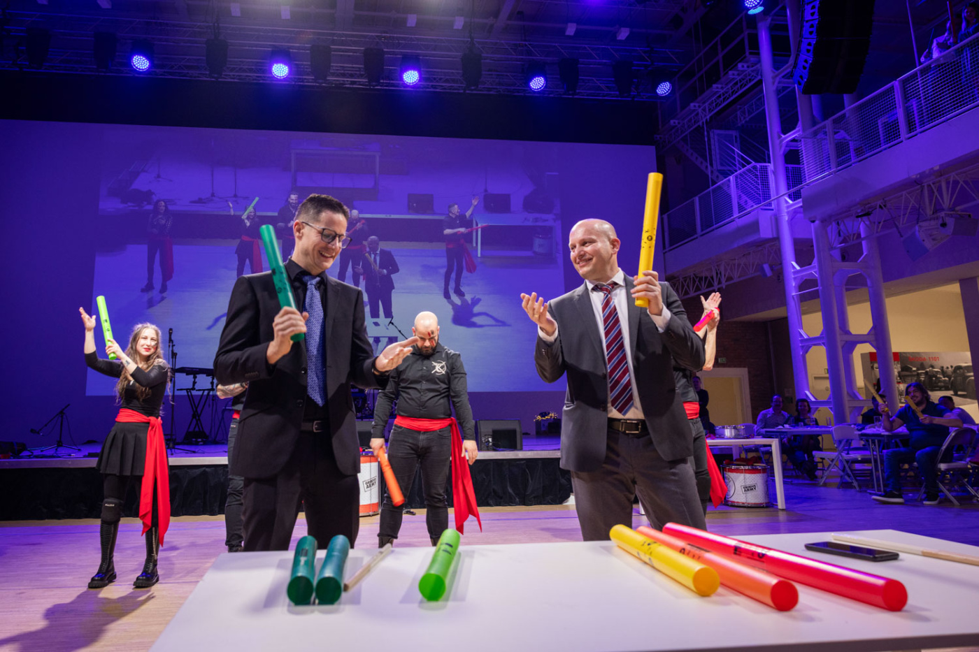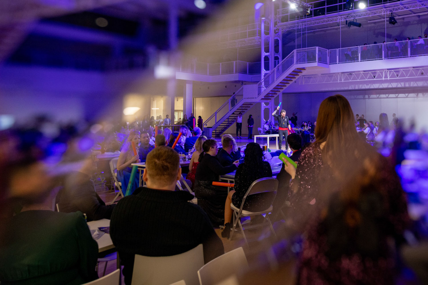 Postarali jsme se o kompletní organizaci eventu – od výběru a pronájmu vhodné lokace až po produkční zajištění celého večera. Připravili jsme tematickou výzdobu sálu, koordinovali hostesky, připravili tombolu, zajistili živou hudbu i dvě originální vystoupení, která hosty vtáhla přímo do děje. Díky tomu se večer přirozeně proměnil v energický a hravý teambuilding, do kterého se zapojily stovky lidí.