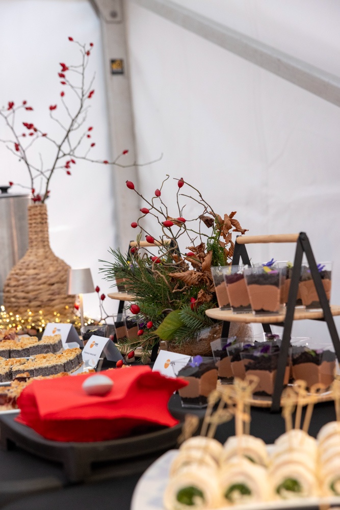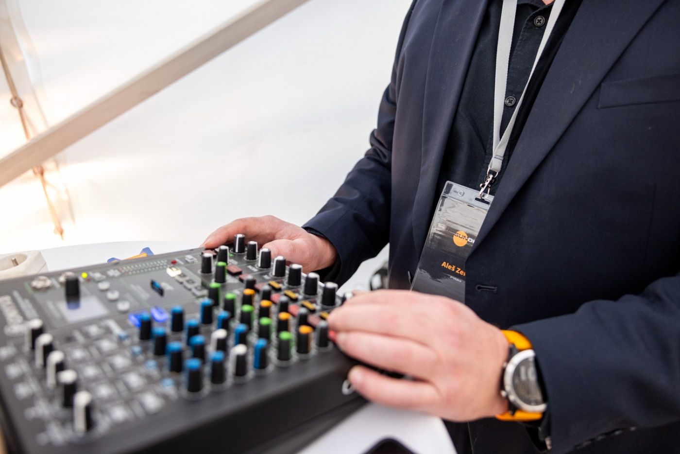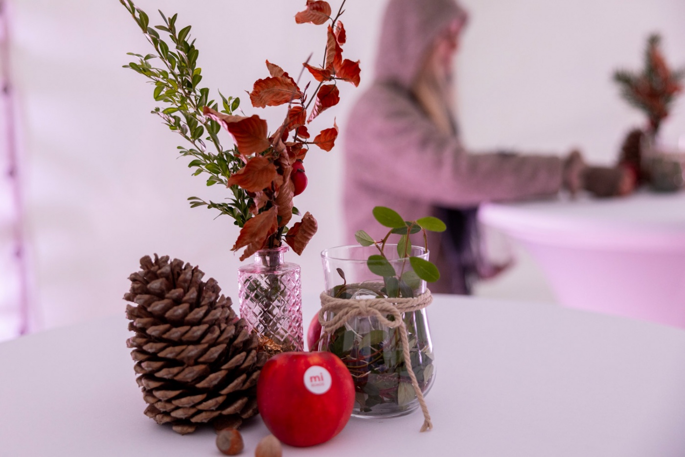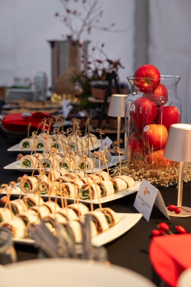 V den D, přímo na místě, to žilo od brzkého rána: nosíme, stěhujeme, pouštíme topení, ladíme catering, hosteskám rozmrazujeme úsměvy, testujeme ozvučení a těšíme se na první hosty. Všechno do stylové červené – barvy MI Roads – a do toho červená lažanská jablka, která provoněla celé zázemí. V 9:30 přichází první hosté a my si říkáme: jo, tohle bude dobrý den. A byl.
